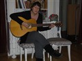 Malin Nyström och Olov Eriksson underhöll med egna melodier och gitarrspel på julfesten